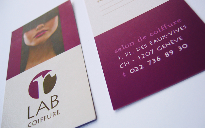 Logo and Hairdresser business card for R LAB COIFFURE.